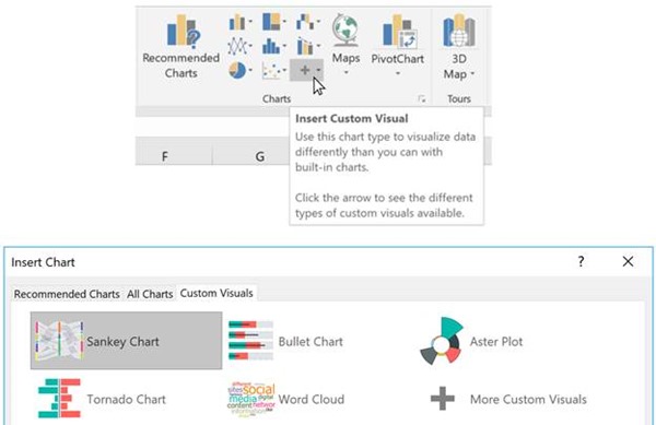 Microsoft announced that Power BI custom visuals will soon be available as charts with Excel. You’ll be able to choose a range of data within an Excel workbook, and pass those data to one of the built-in Power BI custom visuals, or one you’ve created yourself using the API.