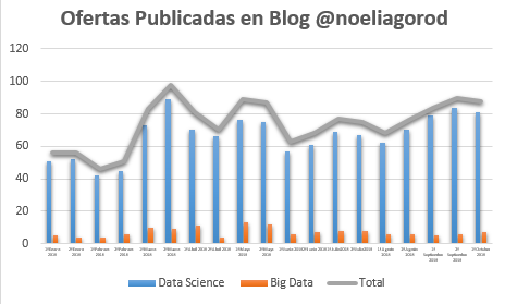Gracias a todas las compañías que enviáis los enlaces de ofertas de empleo relacionadas con Big Data Science. A continuación os dejo las ofertas de las dos primeras semanas del mes de OCTUBRE de 2018, junto con las estadísticas de las ofertas publicadas en lo que llevamos de año.