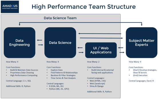 In our recent article, “Case Study: How To Build A High Performance Data Science Team”, we exposed how a real company (Amadeus Investment Partners) is utilizing a structured workflow that combines talented business experts, data science education, and a communication between subject matter experts and data scientists to achieve best-in-class results in the one of the most competitive industries: investing. One of the key points from this article was the use of data science languages as tools in a toolkit. R, Python… Use them both. Leverage their strengths. Don’t build an “R Shop” or a “Python Shop”. Build a High Performance Data Science Team that capitalizes on the unique strengths of both languages.