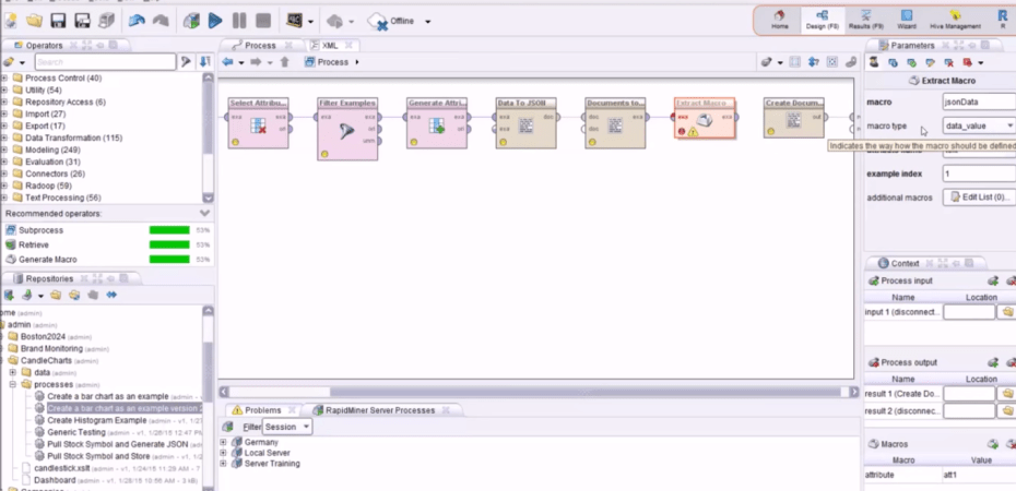 Rapidminer Studio is a popular open source predictive analytics platform that grew out of the Data Mining community. The platform provides all of the necessary tools for a mature data mining process. It provides accurate pre-processing, supports multiple interfaces and executes a wide range of operations ranging from data preparation to model building and validation.