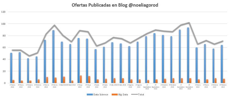 Gracias a todas las compañías que enviáis los enlaces de ofertas de empleo relacionadas con Big Data Science. A continuación os dejo las ofertas de las dos últimas semanas del mes de FEBRERO de 2019, junto con las estadísticas de las ofertas publicadas en lo que llevamos de año.