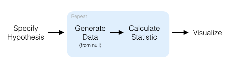 mtcars %>% specify(response = mpg) %>% # formula alt: mpg ~ NULL hypothesize(null = "point", med = 26) %>% generate(reps = 100, type = "bootstrap") %>% calculate(stat = "median")