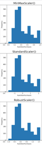 After log transformation and addressing the outliers, we can the scikit-learn preprocessing library to convert the data into the same scale. This library contains some useful functions: min-max scaler, standard scaler and robust scaler. Each scaler serves different purpose.