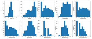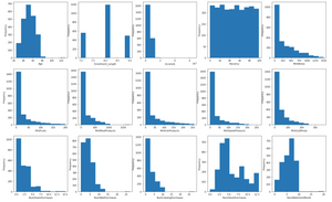 Now, let’s visualize current data distribution using a simple univariate EDA technique – histogram. It is not hard to see that most variables are heavily skewed.