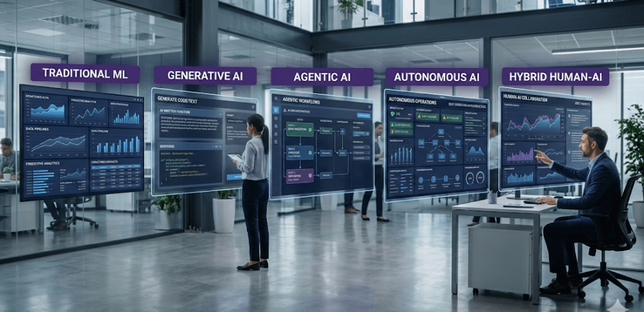 La inteligencia artificial en las organizaciones está evolucionando rápidamente. Lo que comenzó con modelos tradicionales de machine learning está dando paso a sistemas más complejos capaces de generar contenido, tomar decisiones e incluso ejecutar tareas de forma autónoma.